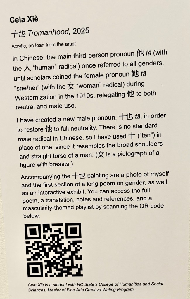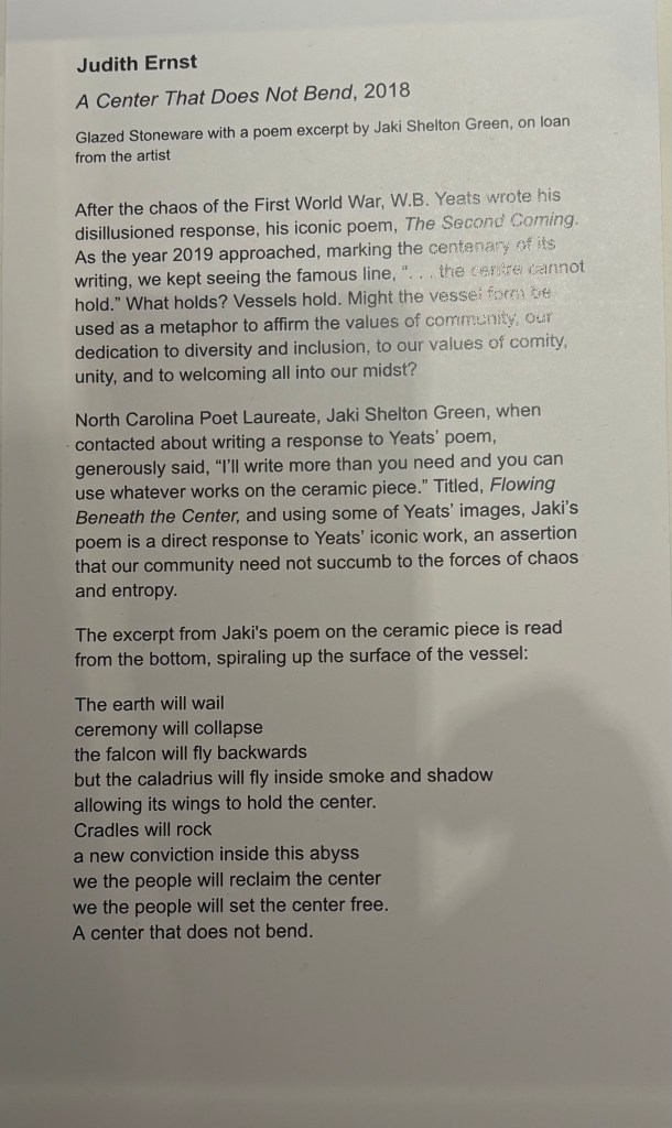 We went to Golden Belt Arts yesterday. Chuck has a piece in a group exhibition there and I wanted to see it. I may not be home to see it on Third Friday. So, we had a more quiet viewing. When we walked in, I was delighted to see that Perrin Marie has a show going on in the main hallway.