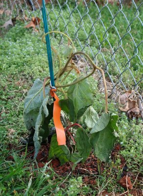 They came today by FedEx and are in the ground. They need to be supported like a grape vine and I decided to let them vine the fence.