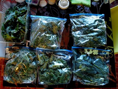 Sometimes you just have to let go. I knew the day was coming that I would need to move on from kale and make room for the summer stuff. The greens have been very successful and I was prideful. They went to flower, so I left them a bit longer to see if the bees…yes, there they are again…would like to work them a bit. Today was harvest day and none to soon. The Red Russian was starting to get a bit limp. Reminds me of Randy & Meg’s bumper sticker, “Eat More Kale”. Well we are.