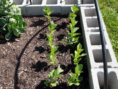 Fava beans and peas are doing fine.