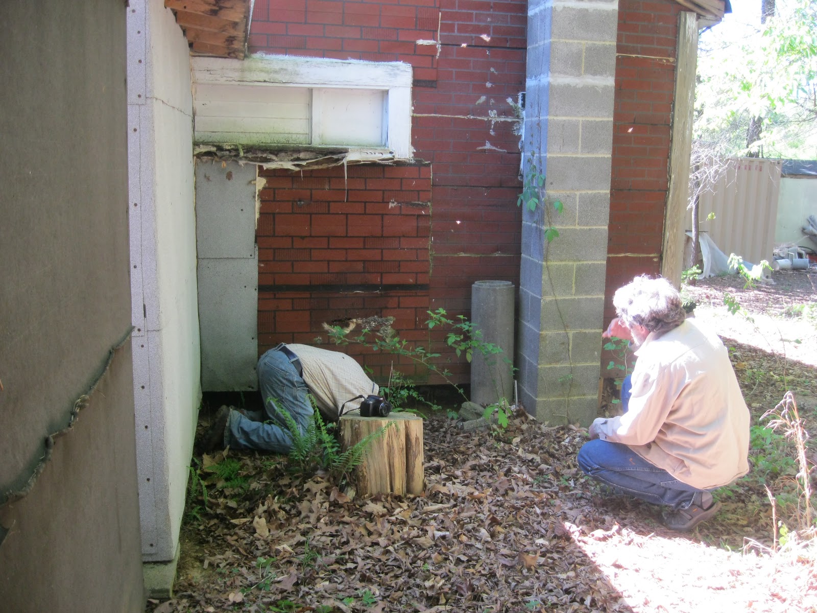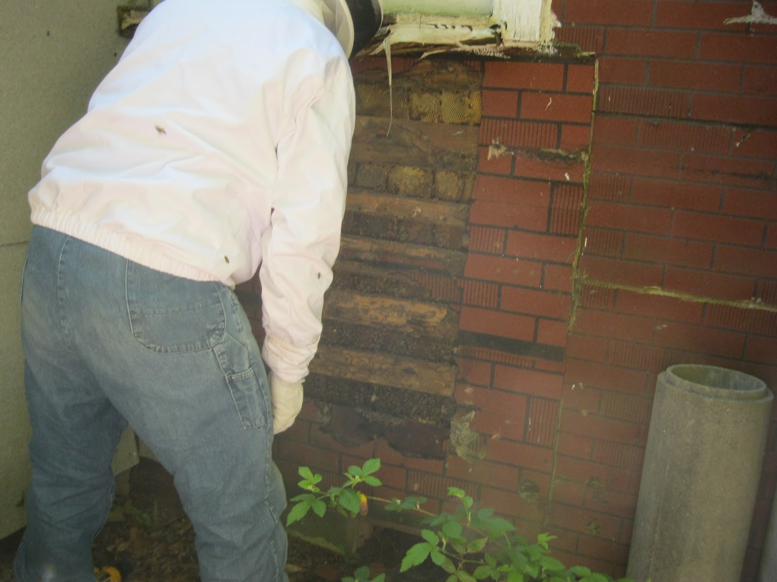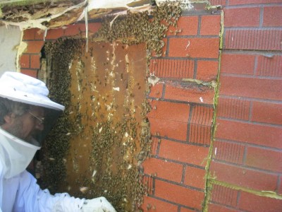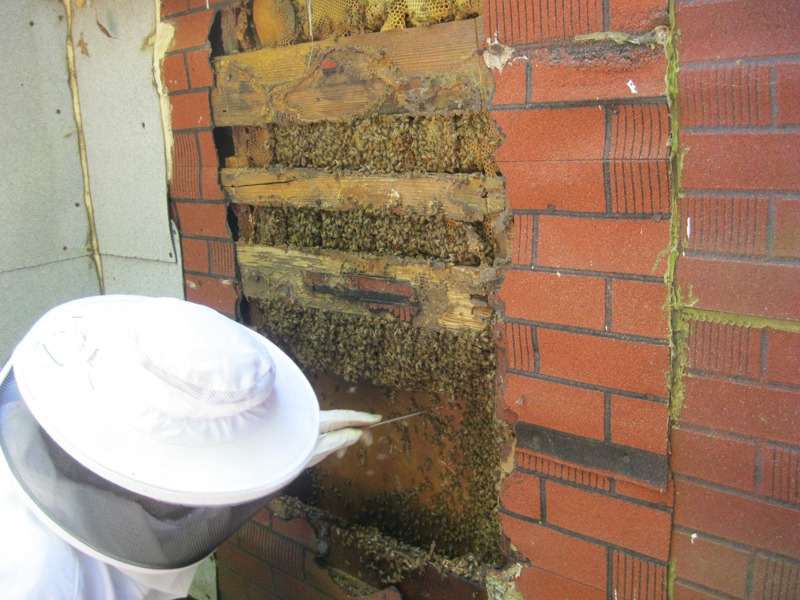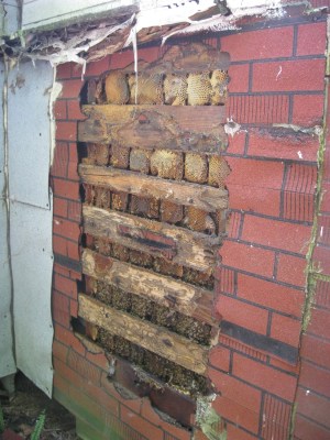 This is the hole after we took out as much comb and bees as we could.