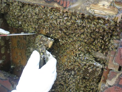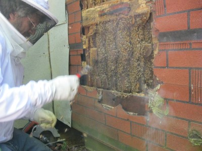 And there were a LOT of bees using that opening.