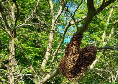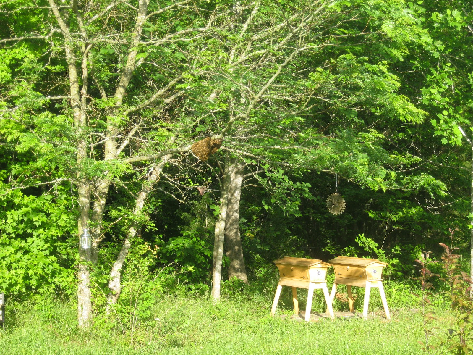 Wow! Two months in and Lucretia has swarmed. It’s only about 10 to 12 feet off the ground on a limb. Kitty has been gone all weekend and we were sitting on the deck and she looked out and saw it. Just happened. Again, wow!