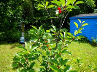 We expected our fruit trees to do better this year, especially with the new bee hives. Most of them bloomed out very early and then the April freezes came. We covered what we could, but I think the cold nipped them at a vulnerable time. We had peaches starting, but they disappeared except for one sick looking one. We have very few cherries and only a couple of damson plums on one of the three plum trees.