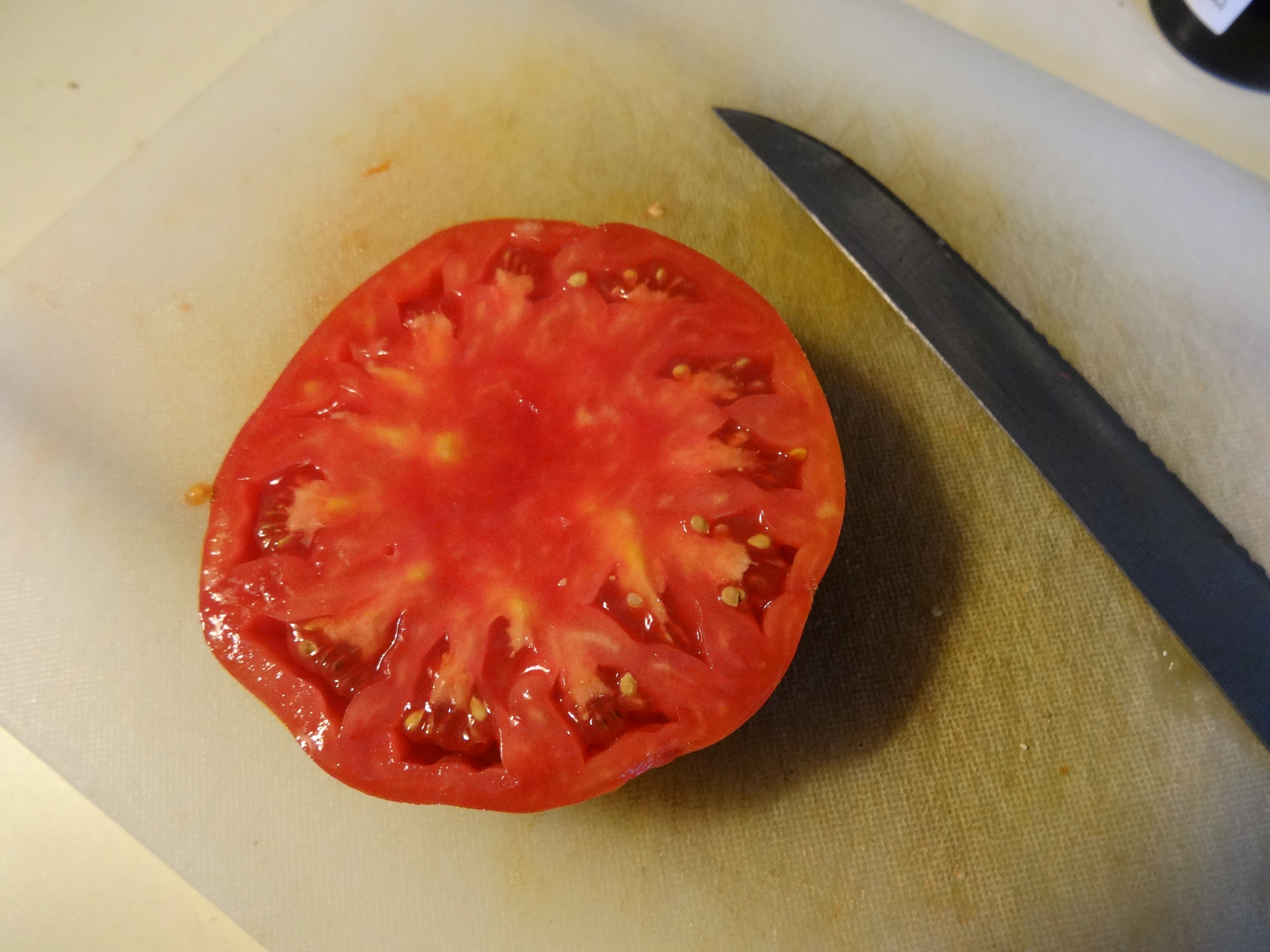 If you are from some other part of the world, pick (from a garden, not a grocery bin) a tomato that slices like this: