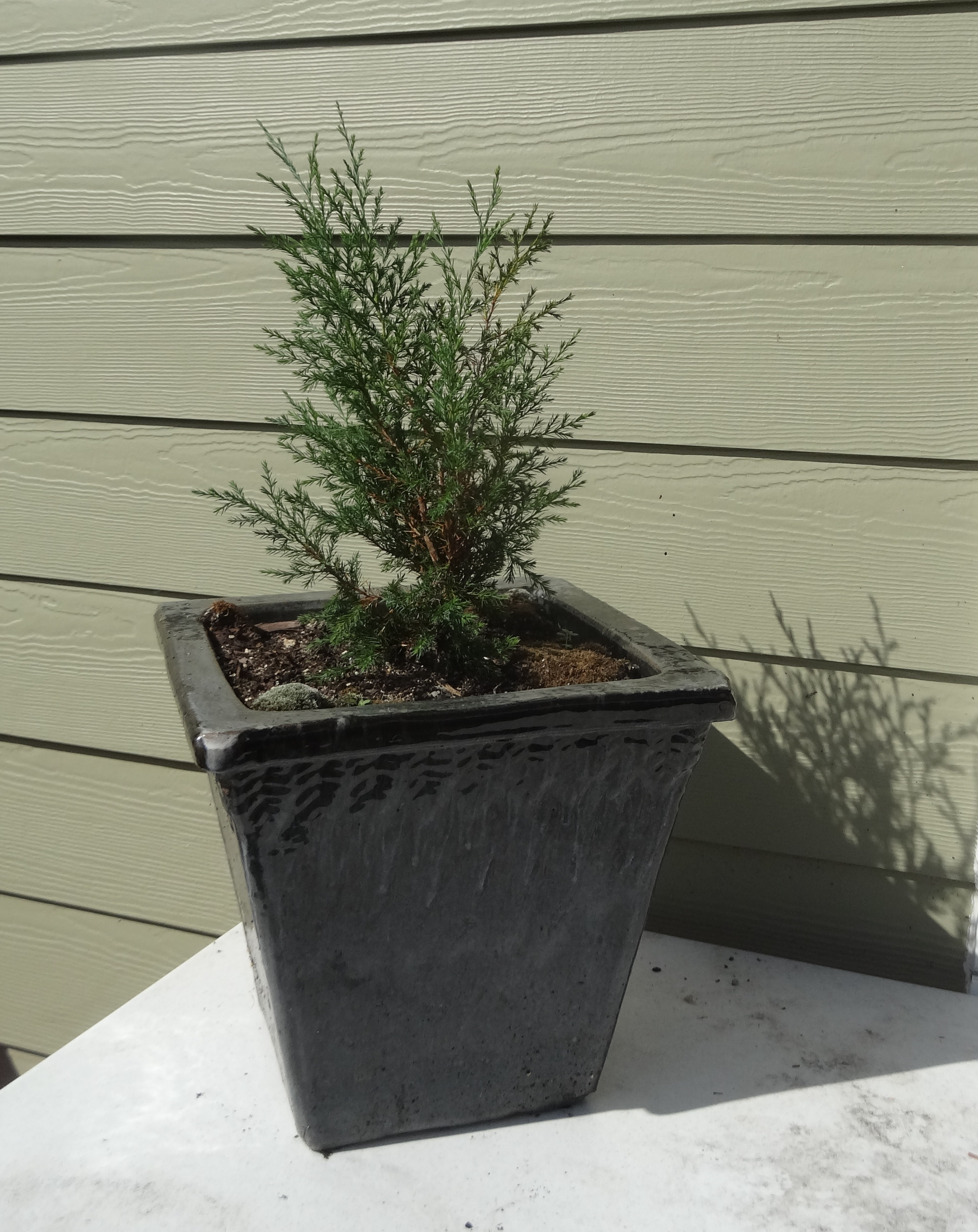 The cedar has flourished. It has filled out nicely and looks healthy. It’s more like 1 foot.