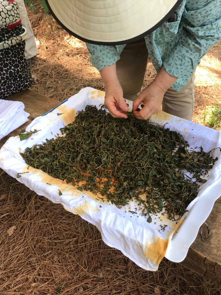 Christine talked to us about tea for a while as everything wilted. And we drank some iced tea she had grown and produced. We rolled a big pile that they had picked the day before.