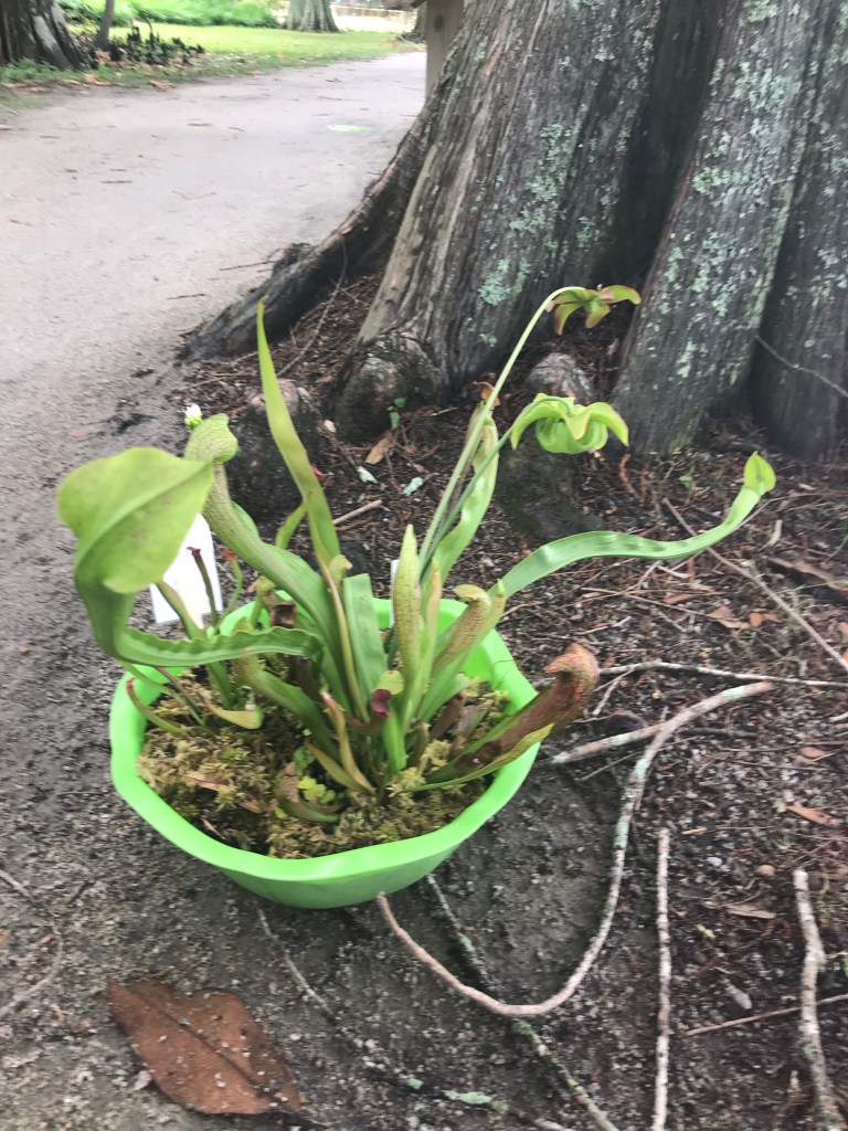 Swan Lake Iris Gardens in Sumter, SC has an Iris Festival every year on Memorial Day weekend and the local Master Gardeners group has a fundraising plant sale. Most of what they sell are irises. But, one of the MGs is a genius with carnivorous plants and donated several bog gardens to the cause. After some heavy quizzing (because I didn’t want to spend $40 on one to just kill it), I bought one.
