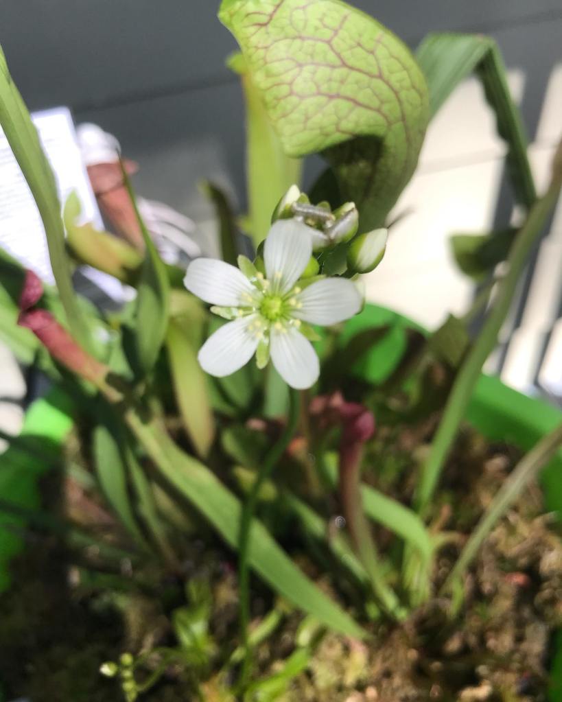 In case you didn’t know, the traps are not the flowers of carnivorous plants. They are modified leaves. On the right is a VFT blossom and on the left is a pitcher plant blossom.