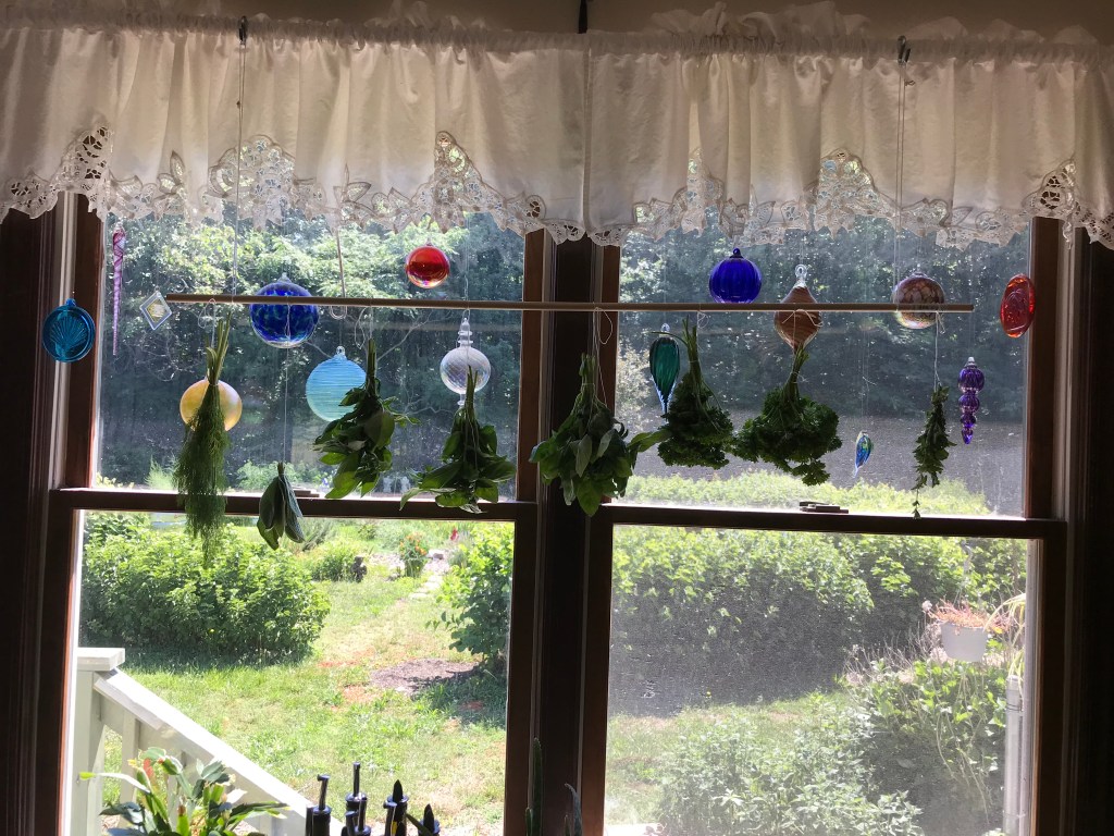 I’ve been drying herbs all summer and the last batch is ready to be picked and added to my jars. And the stick I have used for a hanger can go into the laundry closet until next year.