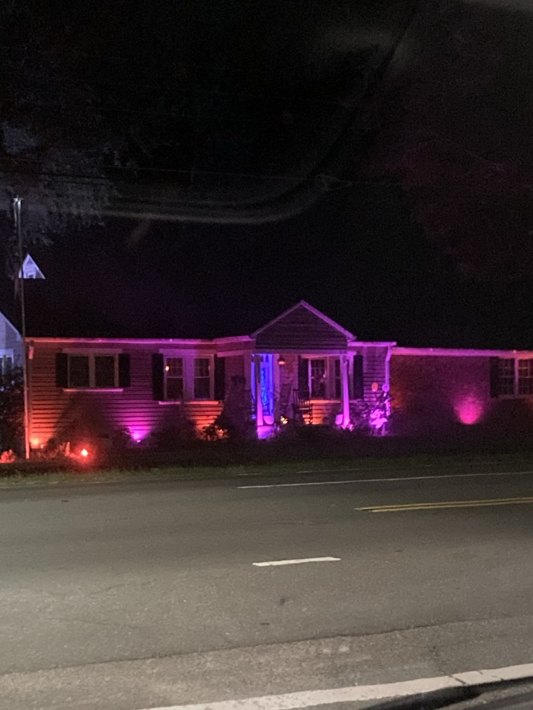 This house is across the street from the entry to the parking lot of the lab where I work. They decorate it for every holiday. Halloween is one of their favorites.
