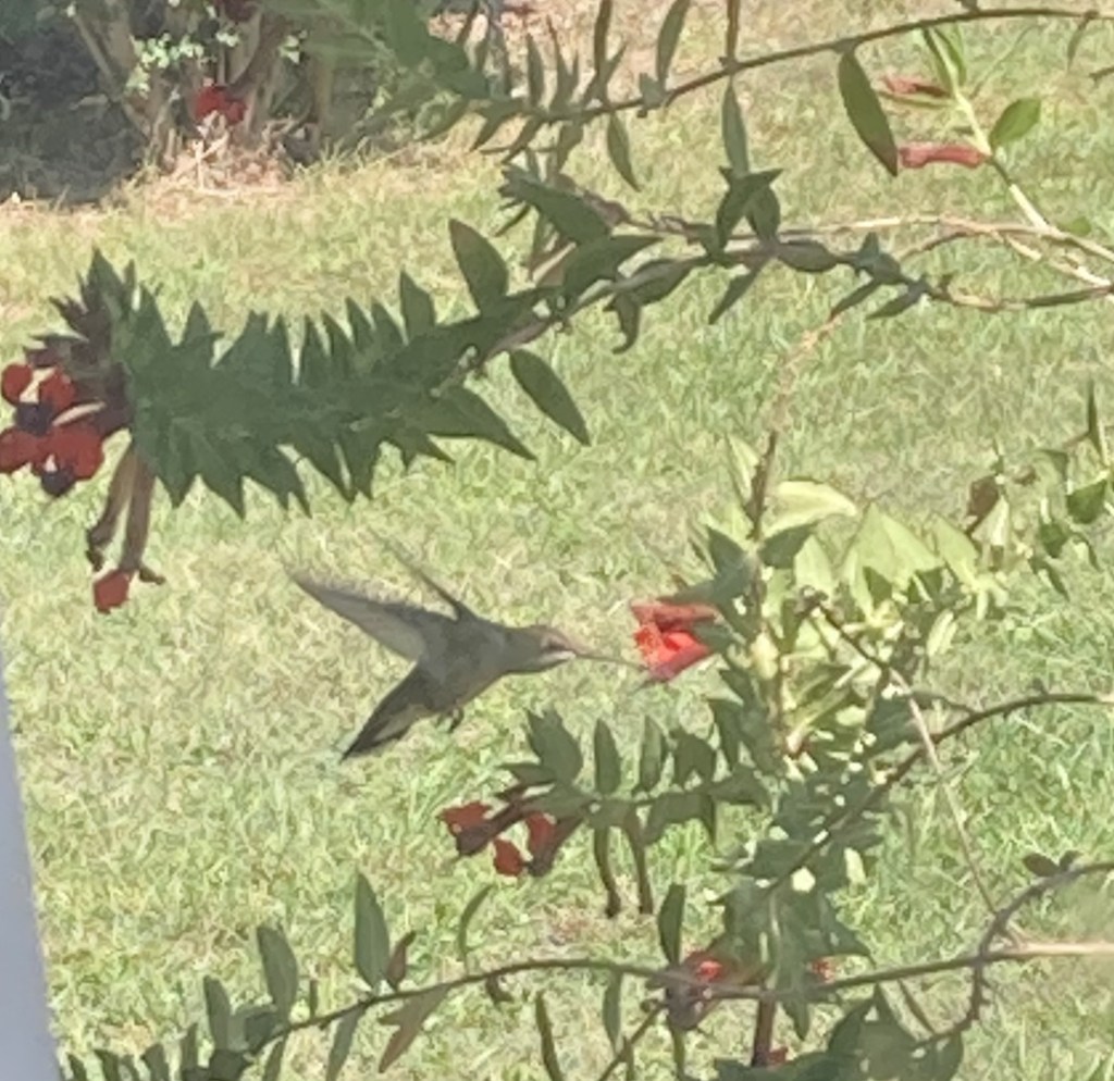 The plant is a bat-faced cuphea. I got one from Painters Greenhouse in Black Mountain last year and the hummingbirds loved it. Painters is the only place I’ve ever seen it, so I stopped in again this Spring and they had them again. It’s a great hummingbird attractor.