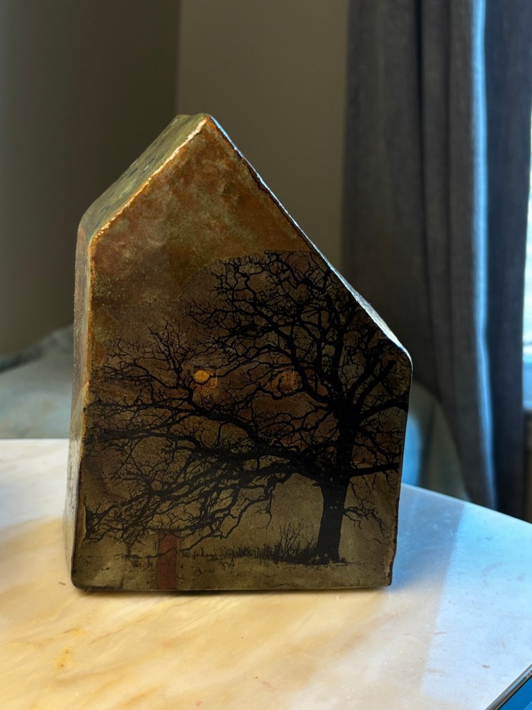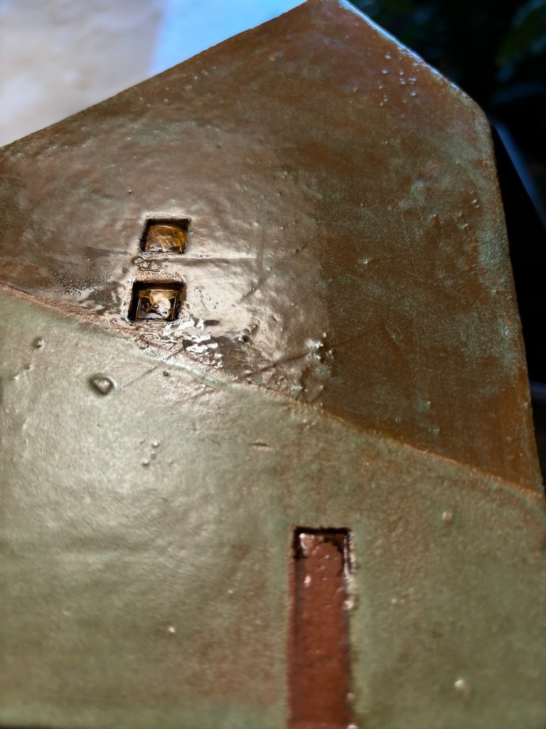 This ceramic house was created by Elaine Evans, one of the artists with space at Golden Belt Arts in Durham, NC.