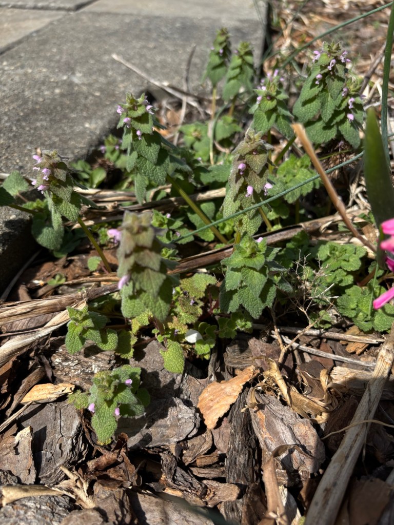 The flowers on the dead nettles look a lot like henbit. But the leaves are different. Deadnettles are more compact. Henbit’s kind of blowsy.