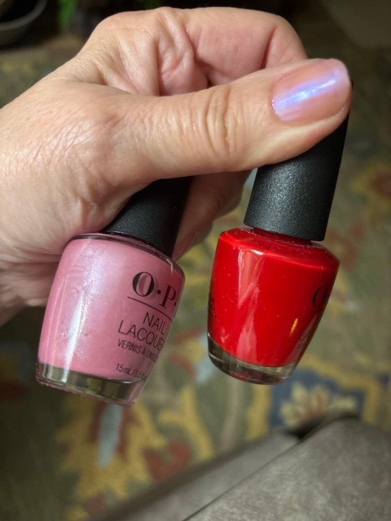 Last year’s shades were OPI Aphrodite’s Pink Nightie and Big Apple Red.