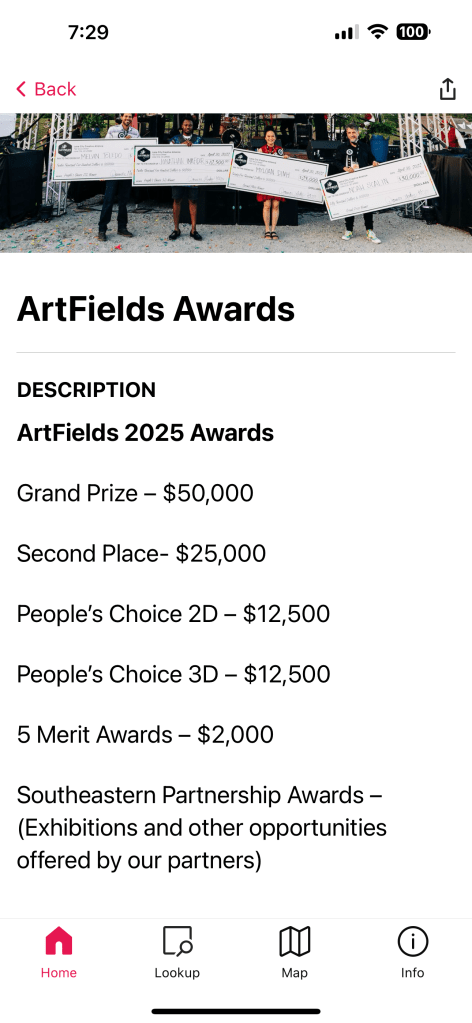 AND they keep the winners on display for a year. This really is a great way for artists to be seen. There are ArtFields events all year, too.