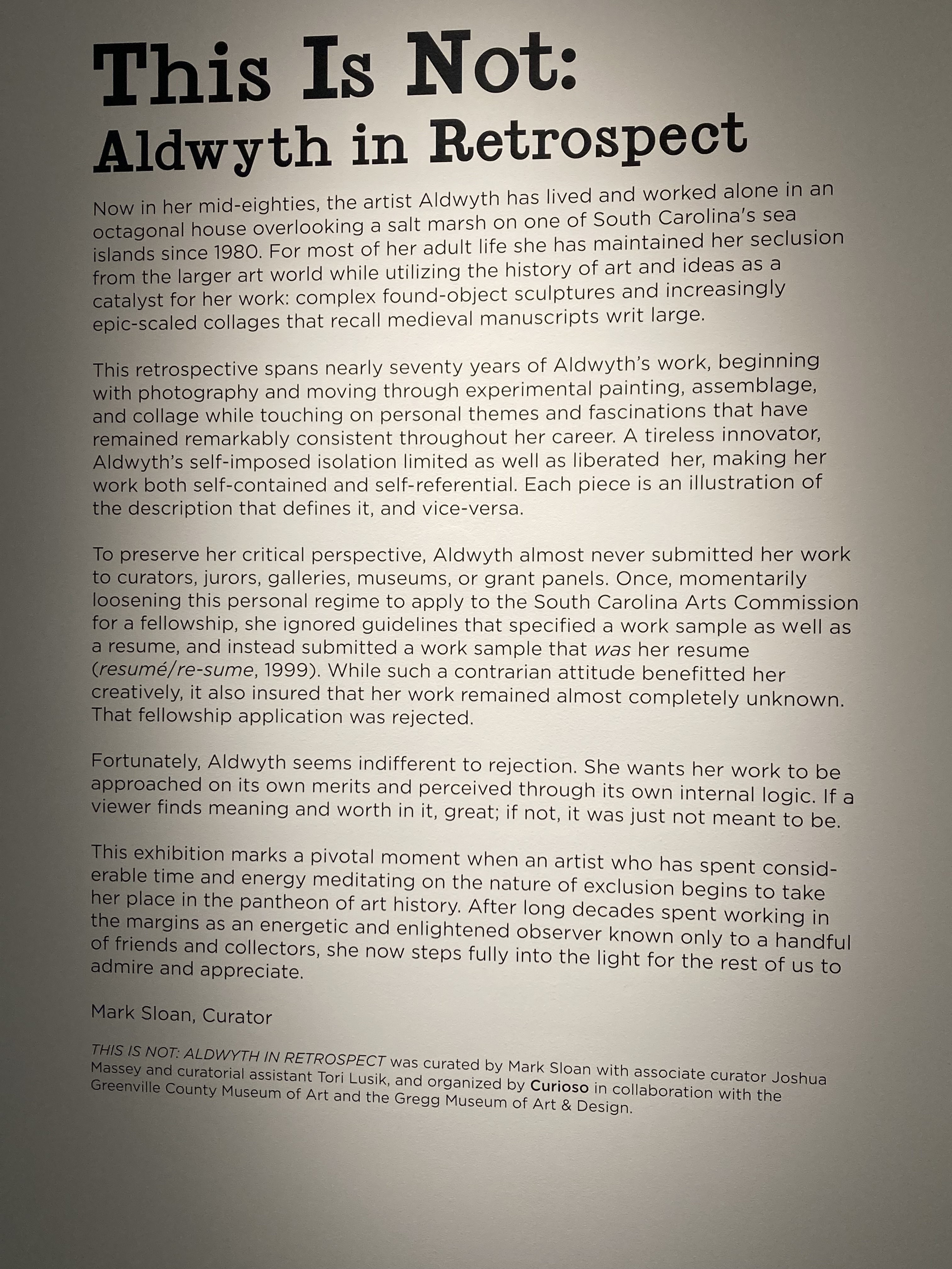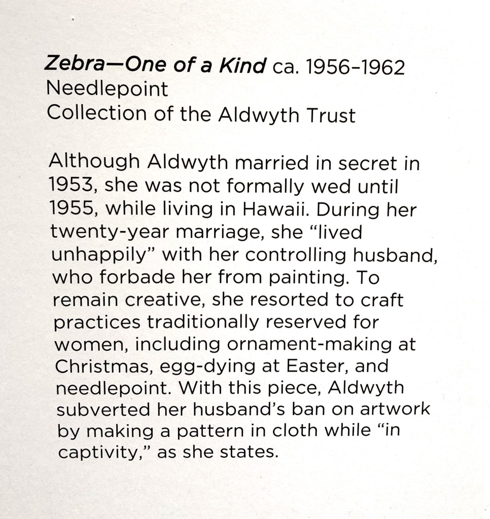 PBS has a show about her. But, I can’t see it because their Roku app is balky for me. However, Vimeo has some stuff. So, I have seen her face and heard her voice. This one was particularly entertaining because the pieces in that exhibition are ones we had seen at the Gregg when we first learned about her.