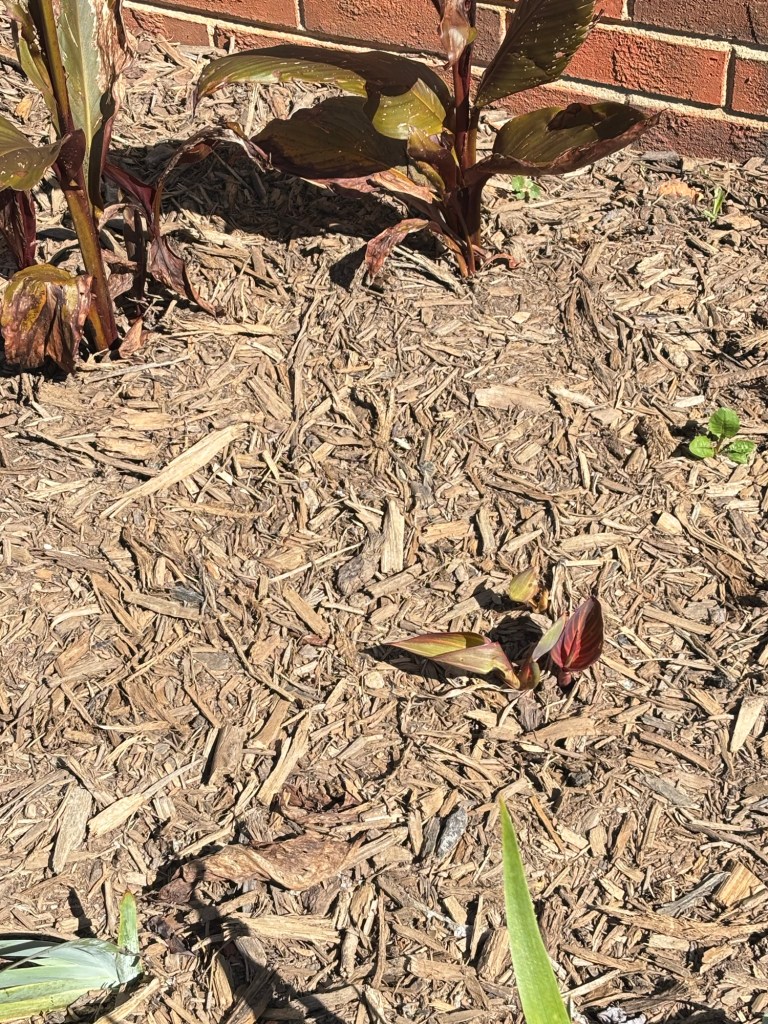 The cannas that I moved to the front of the house are coming up again. So, that move wasn’t deterimental. And the rest of those beds look good.
