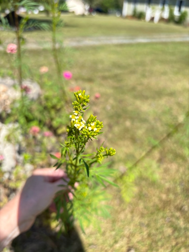 A former coworker was born in Peru. I asked him what Peruvian restaurant in our area was the one that tasted most authentic to him and he sent me to Mi Peru in Durham. The huacatay sauce there is absolutely delicious. I got some seeds to see if the herb was something I need to add to my collection. It is not. Nonetheless, the plants keep coming back. I think it’s related to marigolds but the flowers are not as flamboyant.