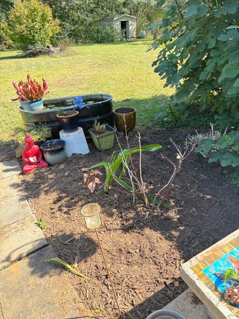 My butt is sore from squatting to pull grass and the other ground level stuff I’ve done this week. I was thinking I’d take the day off. But, I think I might move a little mulch again. That doesn’t actually require squatting and there’s a patch by the butterfly bush that could use it. then the patio be will be done and just require maintenance.