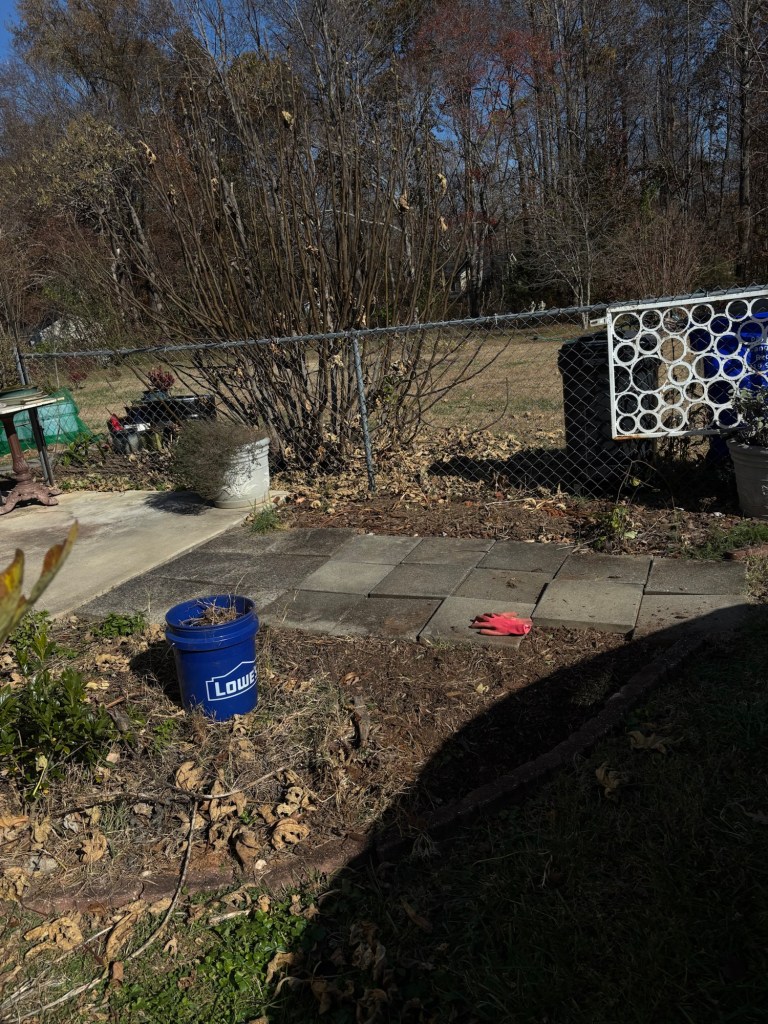 The bucket is full of centipede grass I’ve been pulling up. But, it is so deep and so determined, I’m not sure it’s worth the labor.