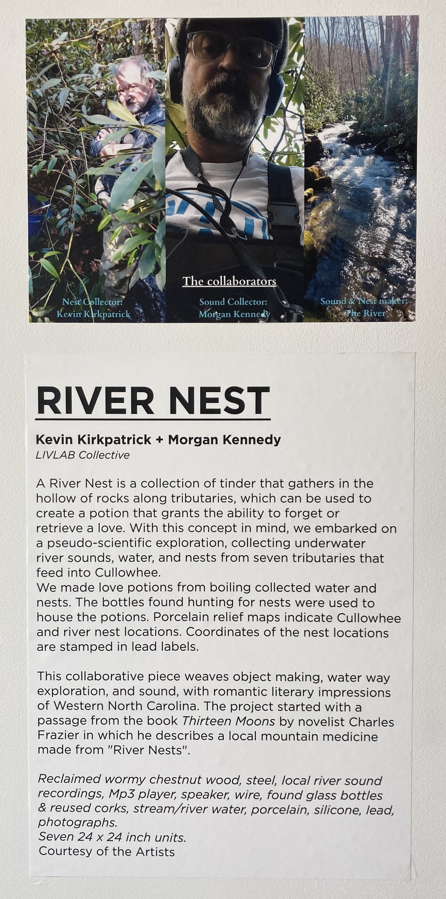 This video the artists’ installation of the work at the Western Carolina University campus in 2022. More about this piece can be found here: https://justinmorgankennedy.com/section/517298-RIVERNEST.html