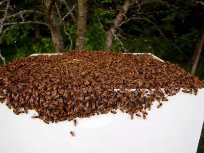 And I could see the comb, unlike this morning when they were covering the combs so completely that I couldn’t see the swarm cells that were evident tonight.