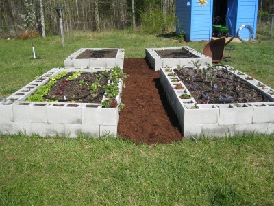 We intend to stain the blocks to make them a little more attractive, too, if it will stop raining for a few days so they can get dry enough to to that little chore. It’s hard to let myself wish for a little dry spell, though. I have a fear that it will become another drought. The stain can wait if it suits the weather.