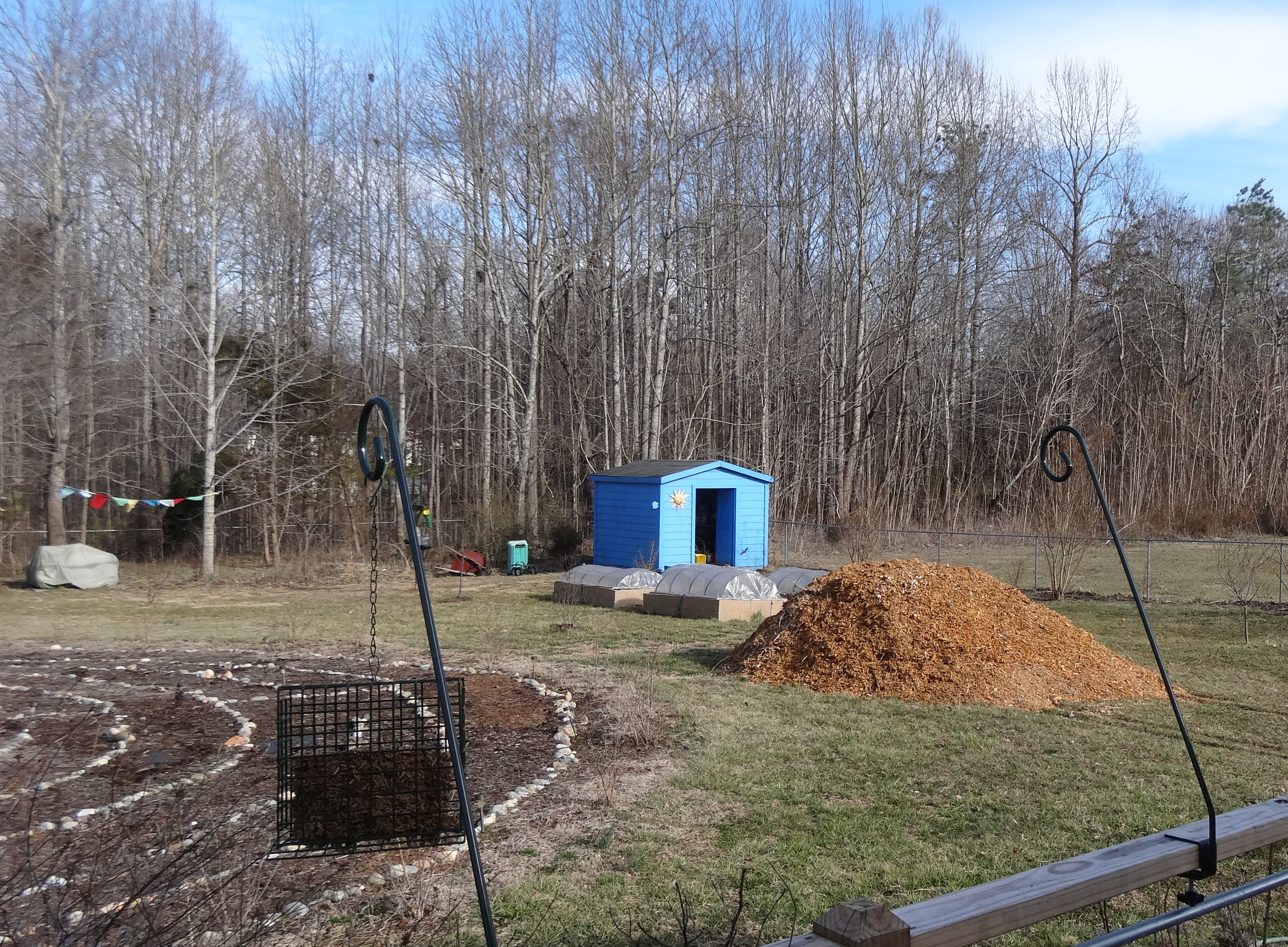 Among the gardening catalogs that show up toward the end of every winter, Chuck spotted Potato Grow Bags from Gardeners Supply. We we debated and pondered. I, finally, decided that it was worth trying them on the deck where the vines can wander through the rails and they won’t be in a brick when it’s time to dig them out.