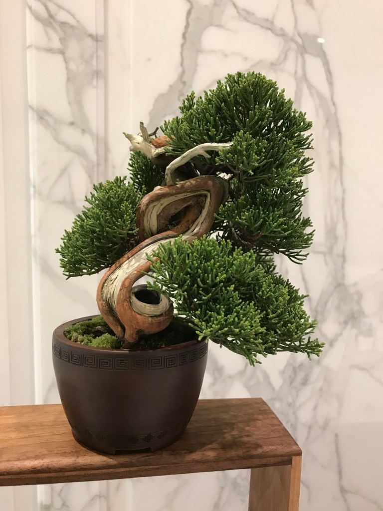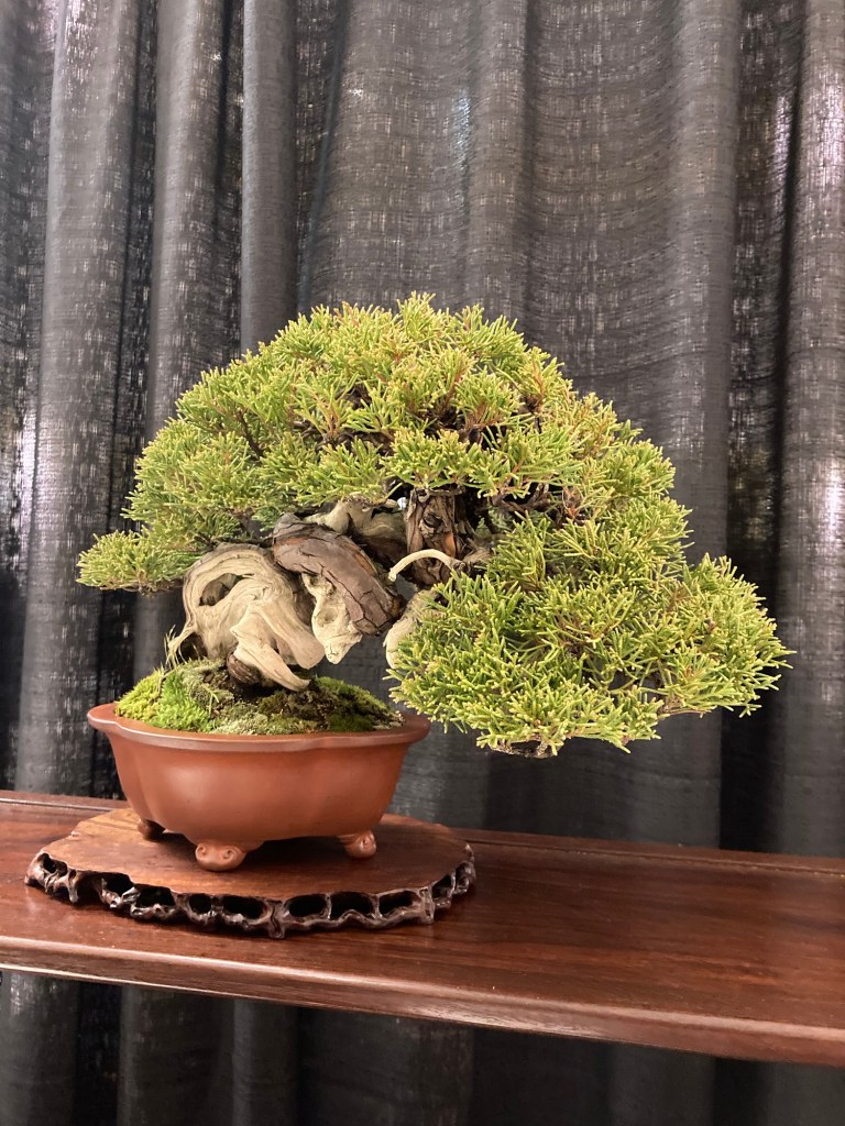 This is the bonsai that bloomed when I got it and has never done so again. I haven’t messed with it since potting, waiting for it to get happier in its pot. That hasn’t happened so I expect to shape it up some when it gets more consistently warm here.