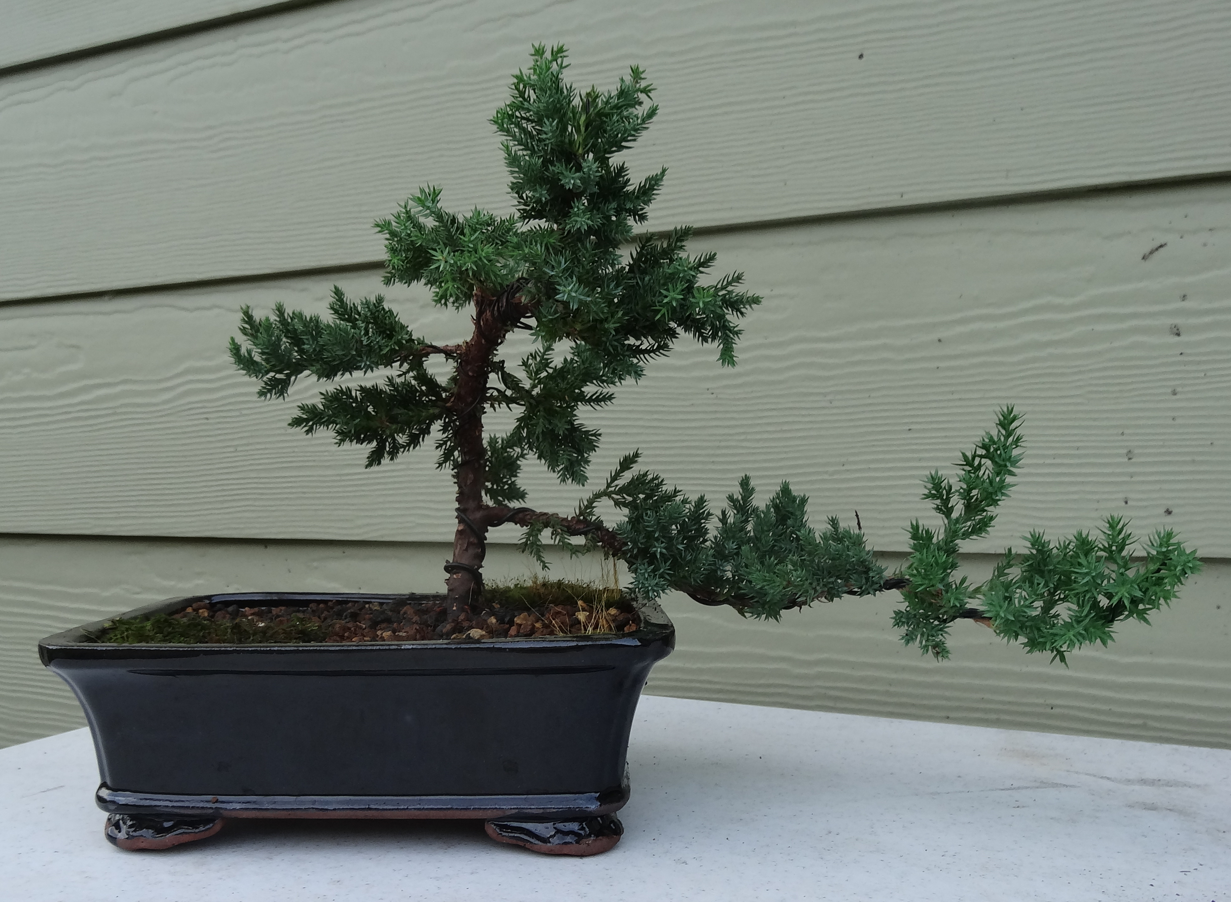 Then we cut and trimmed to begin to get the shape that we wanted. And wrapped wire carefully around all the branches so we could bend them to grow the way we want them to. The wire has to be removed and replaced as the tree grows so that it doesn’t cut into the bark and hurt the tree.