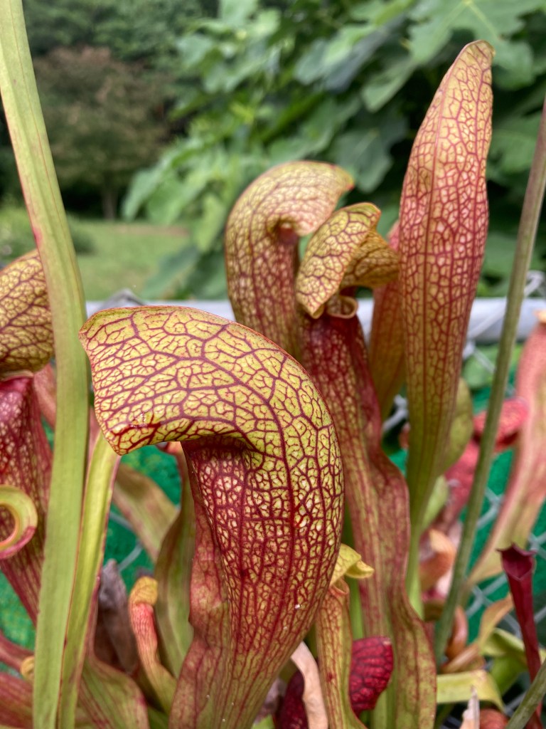 My other Sarracenia are happy in their bowl on a table. I keep their feet wet, there, too. I think one is probably ‘Judith Hindle’. It may be a hybrid. There’s a little one with it that’s flourishing. But, its leaves never have gotten big since I got it. It did so well this summer, I was able to give a piece to a friend. I have no clue what variety it might be.
