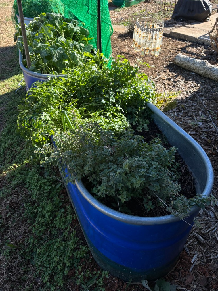 We have a feral cilantro growing next to the kale bed. I’m not showing you a picture because it’s looking pretty punk this morning. It likes cooler weather and comes back after a freeze. But, it doesn’t actually like it to get beloew about 35º.