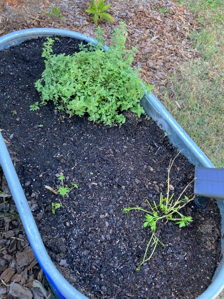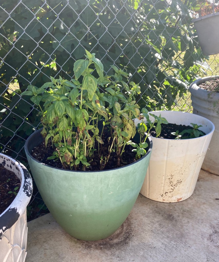 Our herbs are out of hand this year. Usually, the parsley and oregano die back in the Fall and come back in the Spring. Chuck has been replanting cilantro in a pot every Fall (because it’s a cold weather plant) and basil every spring (because it absolutely cannot take any cold.)