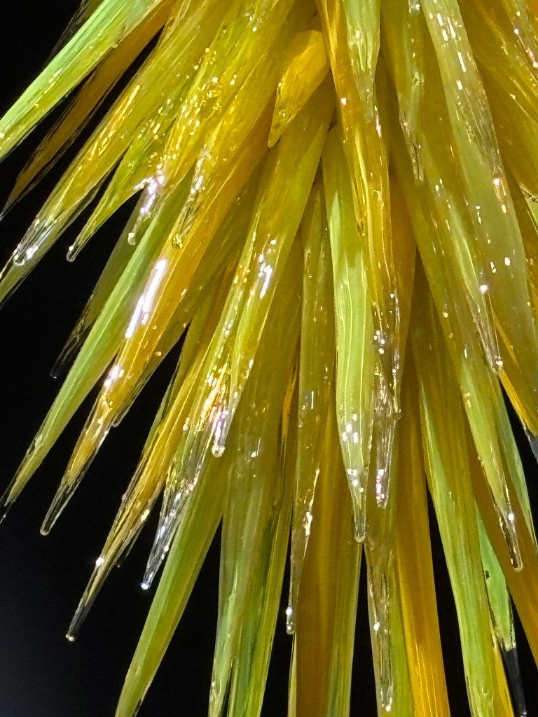 The first time I saw any of Dale Chihuly’s work in person was on a road trip to St. Louis. The Missouri Botanical Gardens had an exhibition and I roadtripped to stay with a friend for us to go together. Another friend who went along was unimpressed by art in the garden. He felt that putting Human art in the midst of Nature’s art was lily gilding. I told him that gardens are a form of art and not “natural” either. So, 2 forms of art together is more of an embarrassment of riches to me. He shut up about it when he realized I really wasn’t going to agree with him.