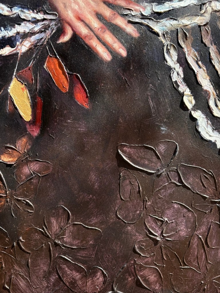There’s a shelf under the poem with 4 little bowls of sand that you can touch. Each bowl has finer sand than the last going from fairly course (almost like playground sand) to the much finer stuff that is used for mandalas.