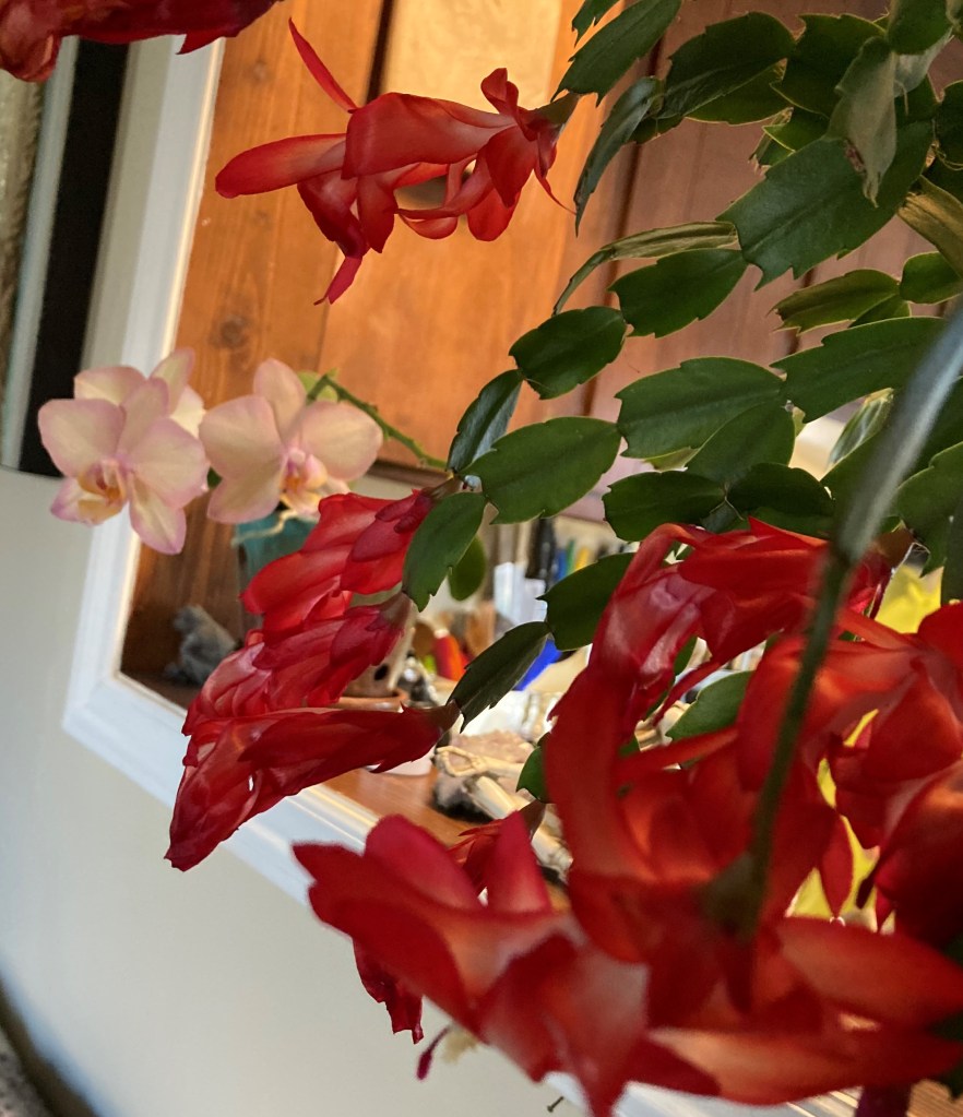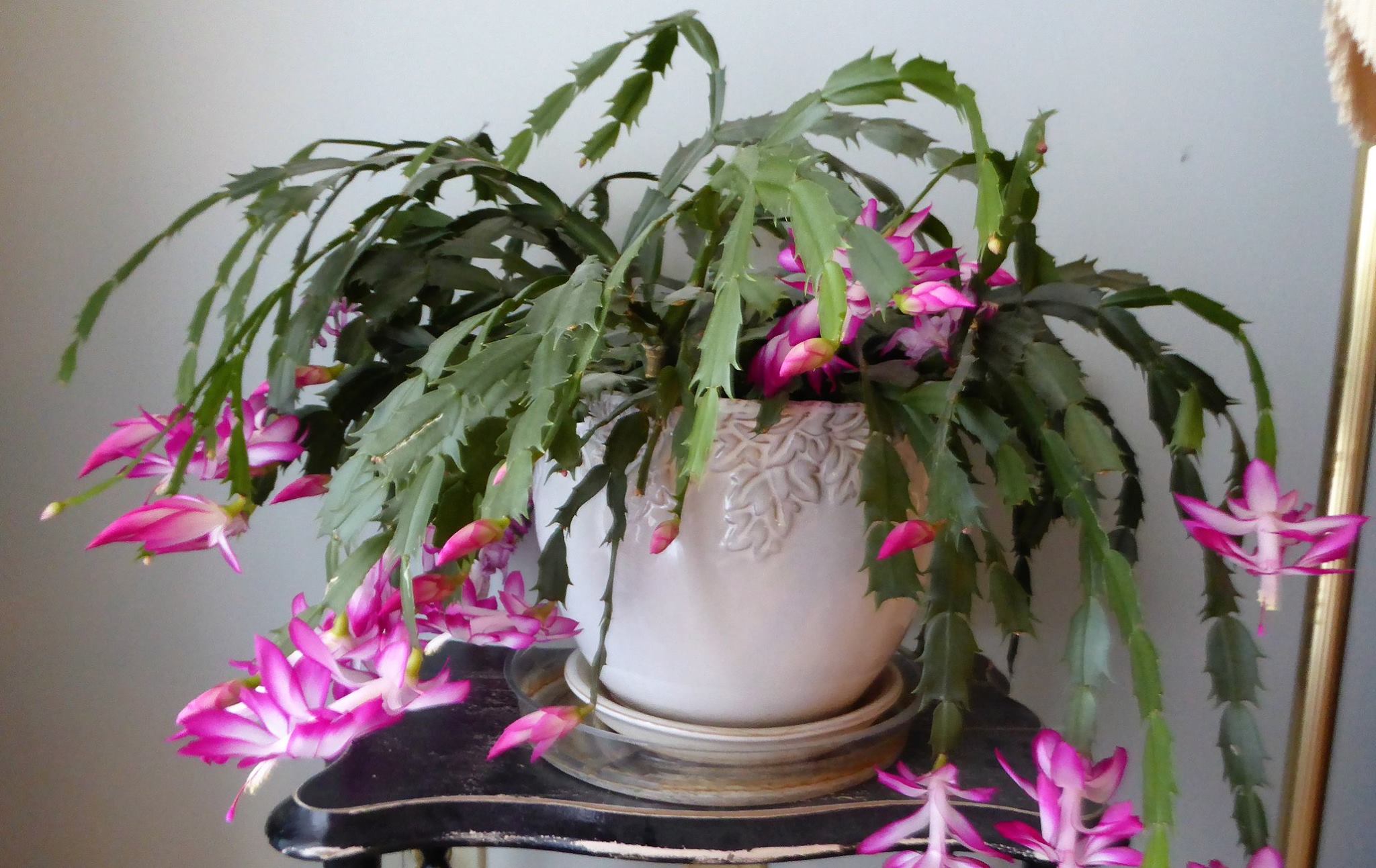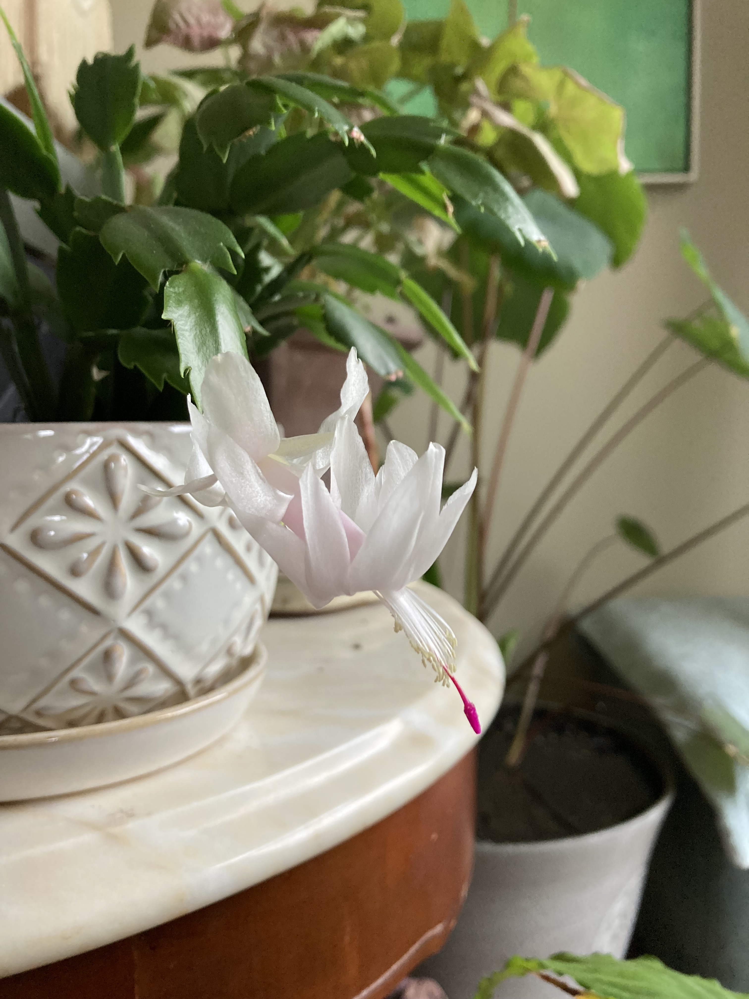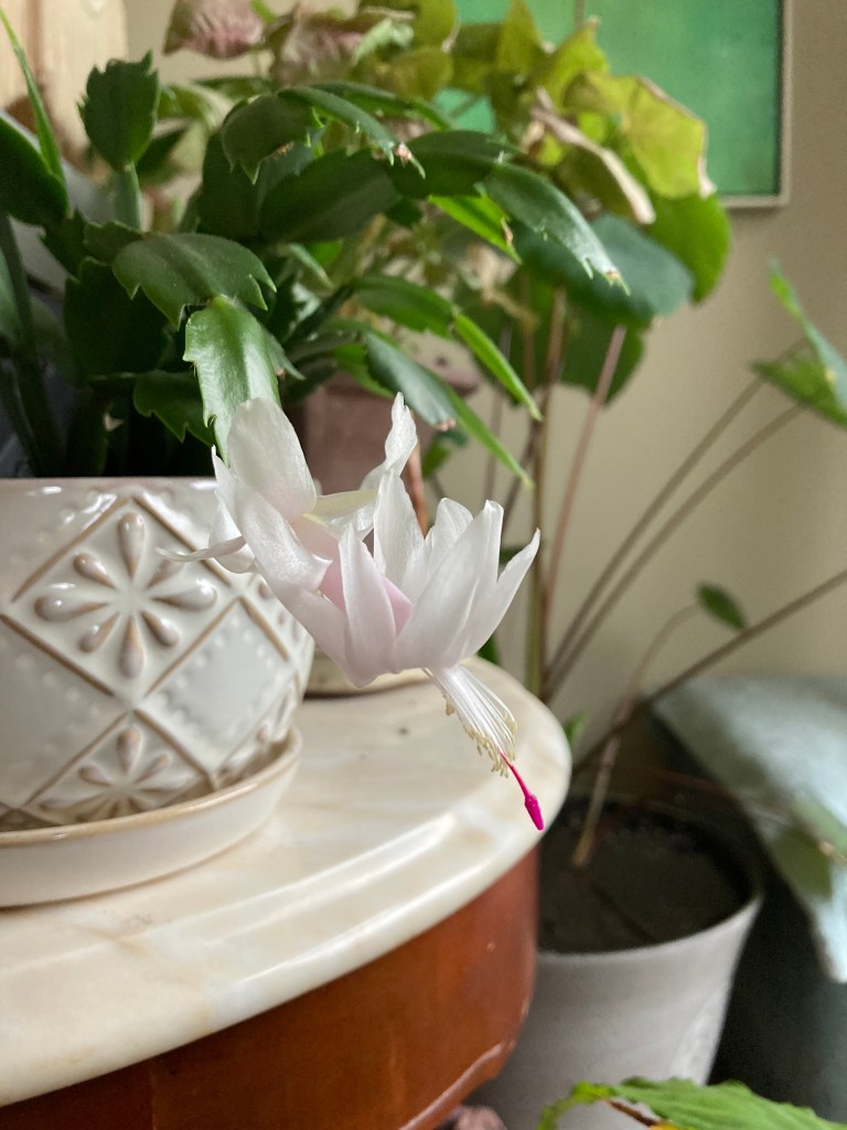 As I waited for it to get big enough to bloom, I continued playing with other plants. One day, I was in home Depot and they had big pots of Thanksgiving cacti on sale. One had light buds. None open. I thought “OMG! I don’t have to wait!” and promptly whisked it home. Where all the buds dropped off without opening. 🙄